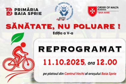 Organizatorii evenimentului „SĂNĂTATE, NU POLUARE!” anunță reprogramarea activităților pentru data de sâmbătă,…